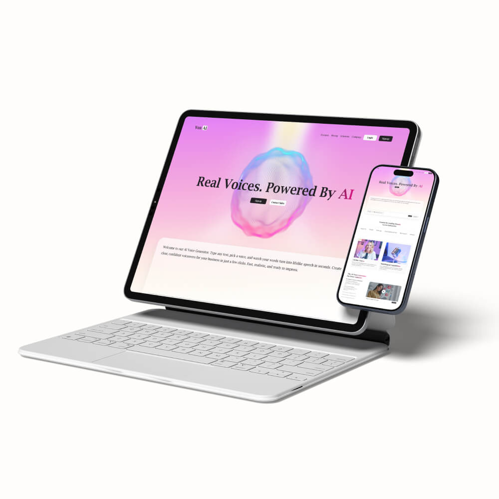 ✅ Sections for product features, voice samples, pricing, testimonials, and integrations